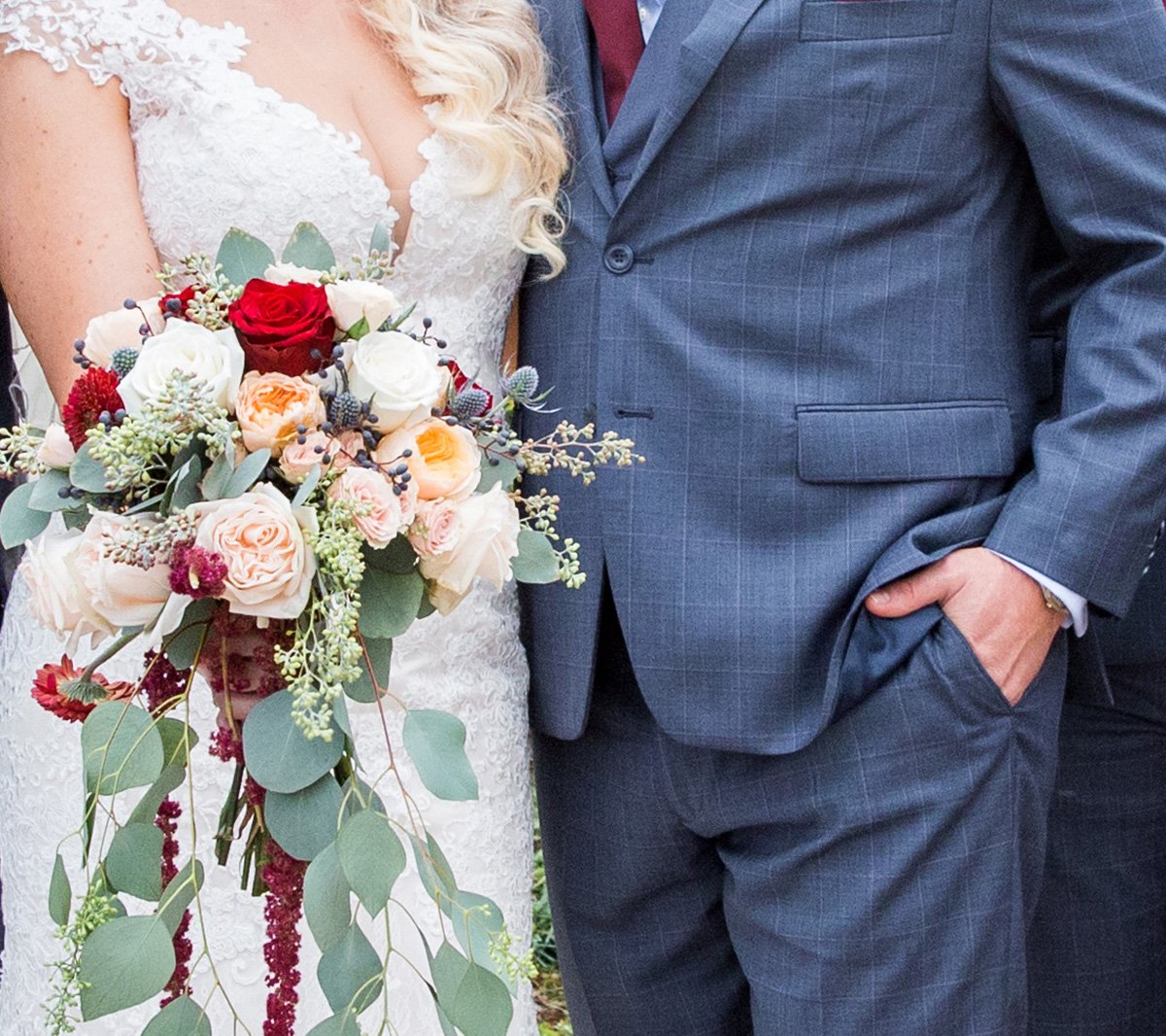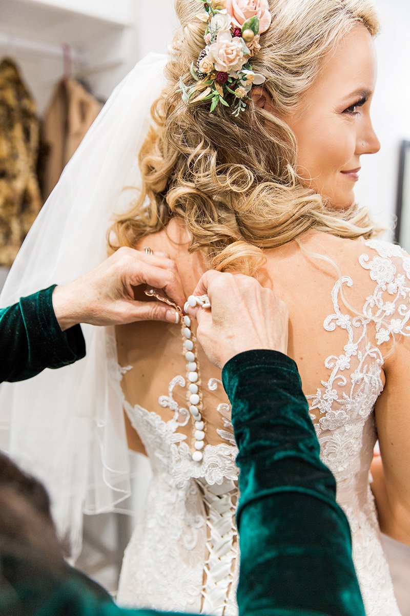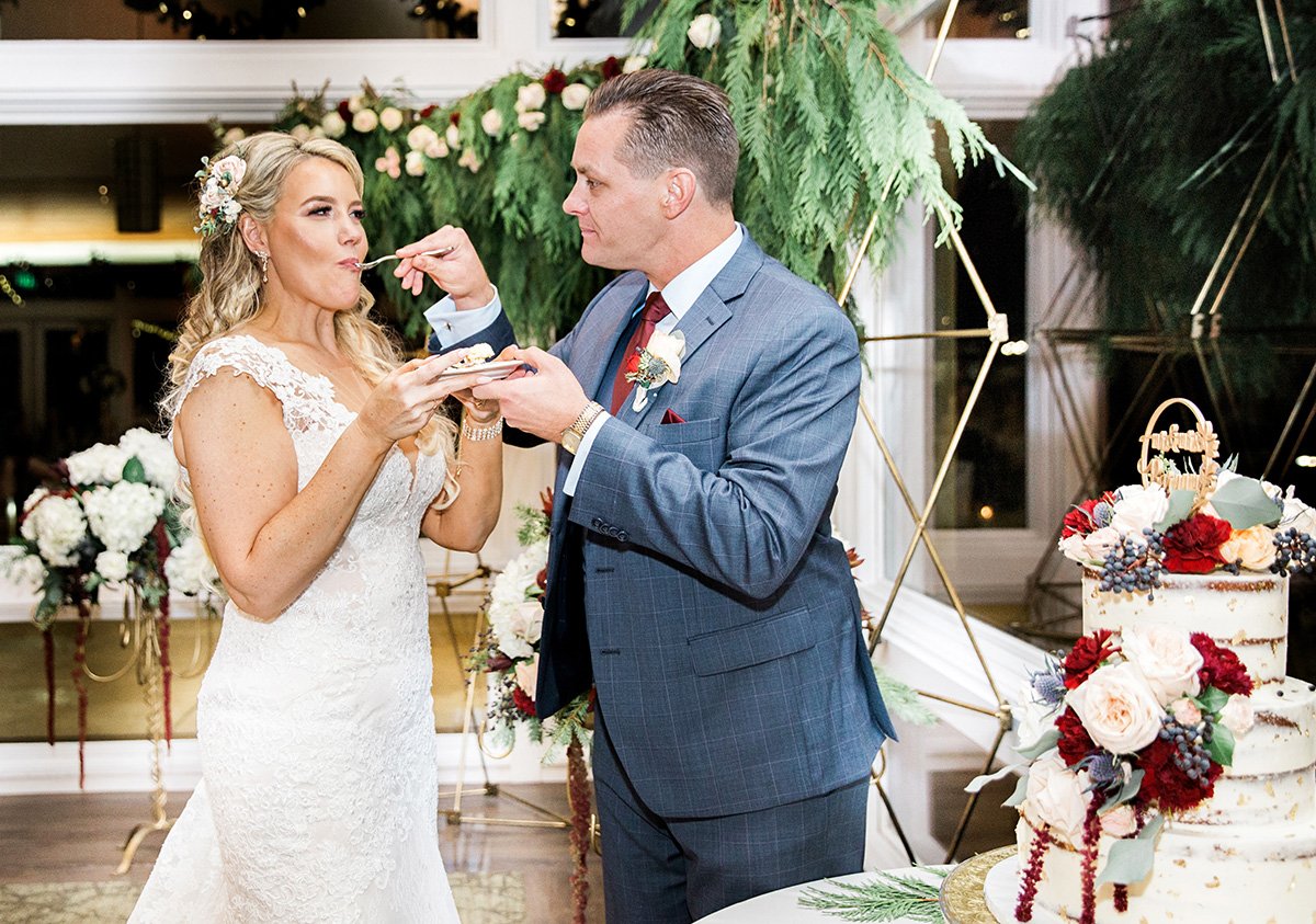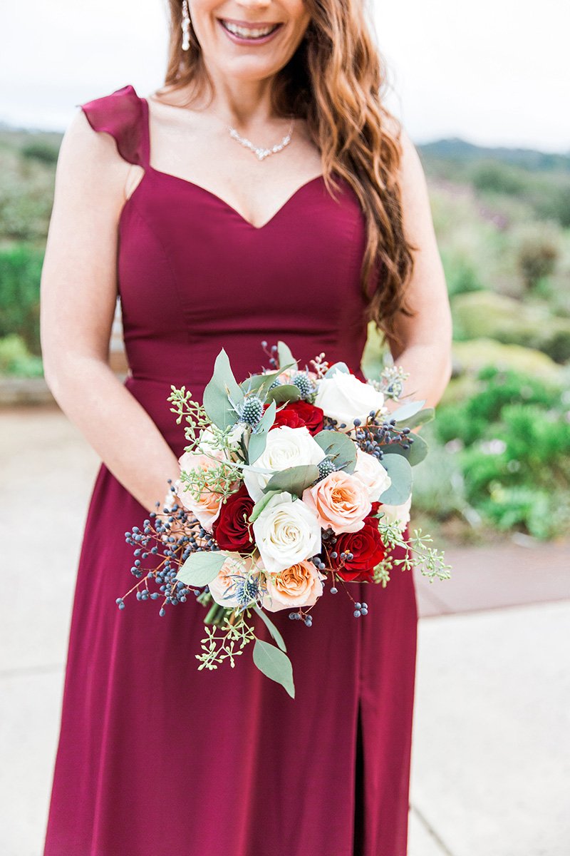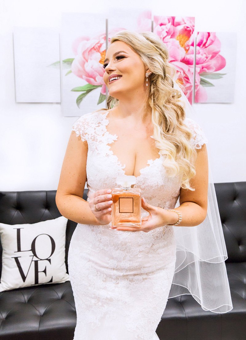 Now to start planning their romantic Christmas wedding. The rich wedding pallette of cabernet and golds. The rolling hills of the Cinnabar Hills Golf Club wedding venue. And Noelle, the bride was a sight of perfection head to toe. From her floral hairpiece entwined in her braided hair to her form-fitting wedding dress with a gorgeous train. Complete with her favorite fragrance. She has always been a Coco Chanel girl and has worn the Mademoiselle scent since I can remember.