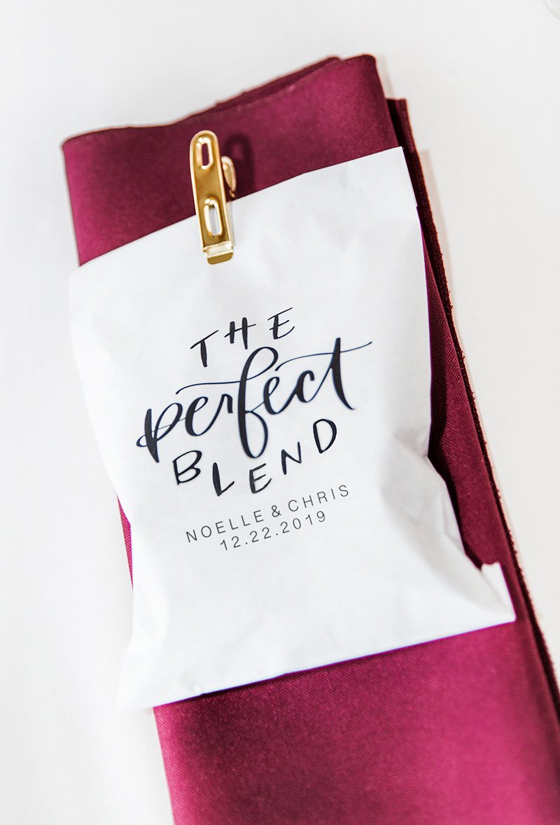 All of us sisters stood by their side as bridesmaids. From the special song our dad wrote and sang for Noelle + Chris to the sweet speech by his best man, it was a day to cherish. We took home the cutest wedding favors of local San Francisco coffee with the message “The Perfect Blend” aww.