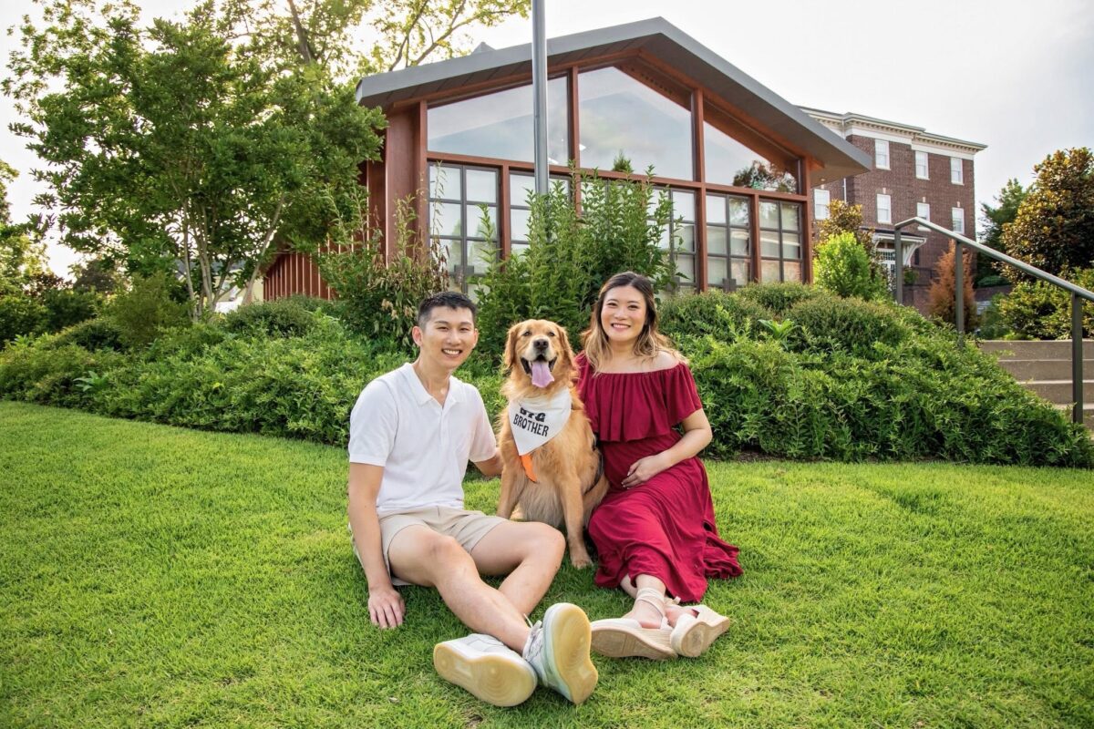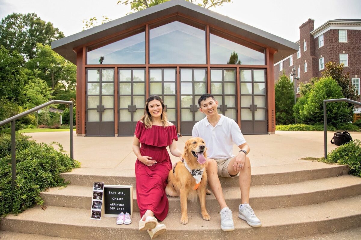 Joe and Sue are excited! It’s a girl! Baby Chloe is on her way. We met downtown at the park on a hot summer day to take these pregnancy photos along with doggie in tow. It was the perfect location to get creative and use all of Sue’s fun props. Congratulations to this adorable family.